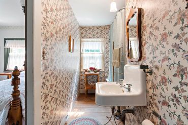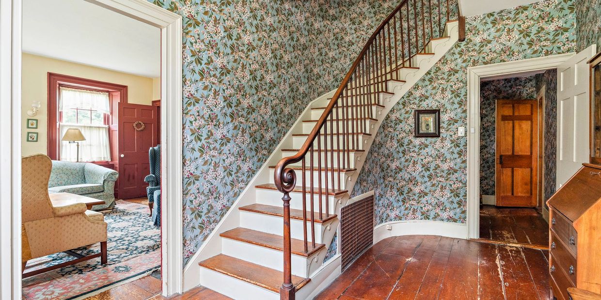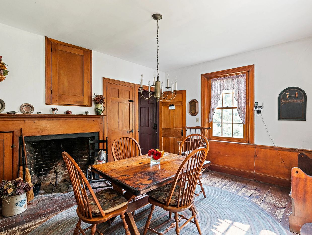 This home has been lovingly owned by the same family for 40 years. This 9 room, 4 bedroom, 2.5 bath home is considered to be an excellent and well-preserved example of the Federal style. The main level consists of the renovated Summer kitchen. The four remaining rooms lie on either side of the main staircase and are then further divided by two chimneys. This home has 8 fireplaces, one in each main room and bedroom. The kitchen and dining room fireplaces contain the original bake ovens. Nestled into the two chimney coves are enclosed stairways, very steep and winding that also lead to the second floor.