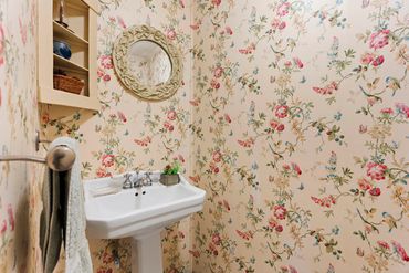 The second floor has bedrooms in each corner of the home with the main staircase as the divider. The bedrooms on each side are also connected via hallways created by the chimney stairs. All of the bedrooms have a fireplace. The two full baths are located on this level.